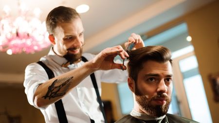 Мужская стрижка и моделирование бороды в барбершопе RedHead Skullatov