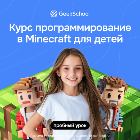 Главная » Услуги Программирование и 3D-моделирование в Minecraft Просмотров 7 Узнайте на бесплатном занятии, понравится ли вашему ребенку создавать игры и анимации GeekBrains