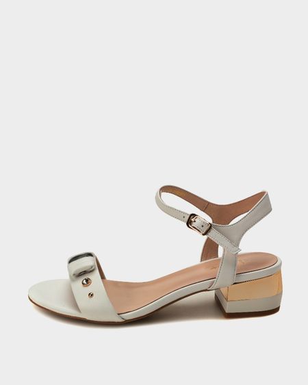 <html> <head></head> <body> <ul> <li>Натуральная кожа</li> <li>Декоративные элементы </li> <li>Регулируемый ремешок</li> </ul> <p>Стильные босоножки с каблуком металлического цвета. Застегиваются на регулирумый ремешок на щиколотке.</p> </body></html>