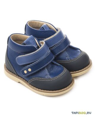 Ботиночки на первый шаг для маленького мальчика, выполнены из мягкой гладкой кожи классического синего цвета. Защитное покрытие в тон на носике и задинке. Упругая, умеренно-эластичная подошва с естесственным перекатом, каблук "Томаса" для профилактики плоскостопия. Нежнейшая яловая бесшовная подкладка с выкладкой свода стопы. Жесткий задник. Два ремешка с застежкой типа велкро.