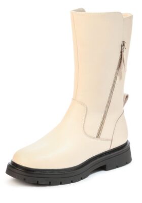 Сапожки демисезонные для девочки на подкладке из шерстяной байки. Выполнены из натуральной серой кожи и велюра. Элегантная модель с мягким, комфортным