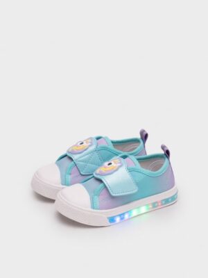 Кеды детские для девочки. Градиентные текстильные кеды на подошве с огоньками. Спереди на липучке имеется патч единорог. Широкая липучка очень удобна и