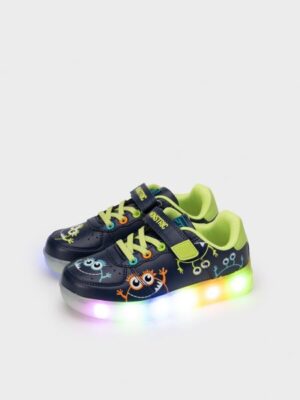 Стильные детские кеды с огоньками для мальчика. Кроссовки выполнены из искусственной кожи, обладающей высокими эксплуатационными свойствами.