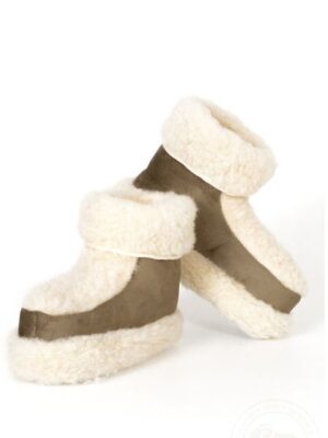 Велюровые тапочки-сапожки выполненные из натуральной овечьей шерсти с прорезиненной нескользящей подошвой. Расчитаны на узкую ногу с не высоким подъемом.