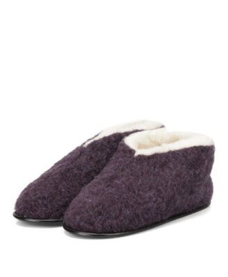 Низкие домашние тапочки для взрослых из натуральной овечьей шерсти на твердой подошве. Alwero