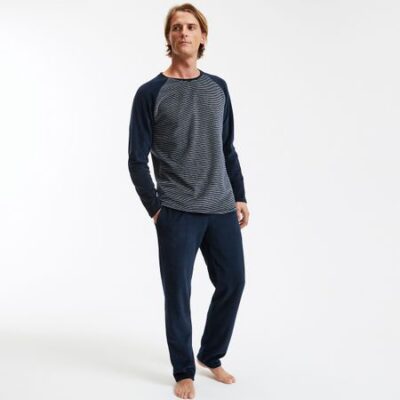 Описание • Футболка в полоску, рукава реглан • Однотонные брюки, эластичный поясПараметры изделия для размера 40/MФутболка • Длина: 73 см • Обхват