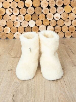 Домашние высокие тапочки для взрослых из натуральной овечьей шерсти с прорезиненной нескользящей подошвой. Alwero