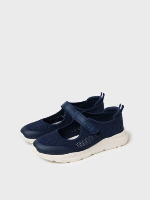 Школьные туфли для девочки подростка. Туфли выполнены из дышащего вязаного текстиля и искусственной кожи. Возвратный чересподъемный ремень на липучке дает
