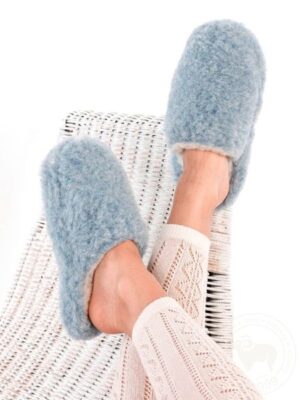 Тапочки-шлепки для взрослых из натуральной овечьей шерсти с прорезиненной нескользящей подошвой. Alwero