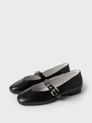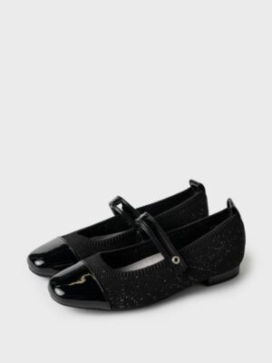 Школьные туфли для девочки подростка с чересподъемным ремнем с пряжкой. Чересподъемный ремень имеет резинку с внутренней стороны, поэтому туфли легко обувать.