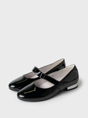 Школьные туфли для девочки подростка выполнены из искусственной лаковой кожи. Чересподъемный ремень имеет резинку с внутренней стороны, поэтому туфли легко обувать.