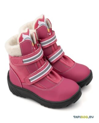 Ботиночки утепленные, на подкладке из шерстяной байки, для самых маленьких. Выполнены из натуральной кожи модного малинового цвета, носок усилен гидрофобным покрытием.
