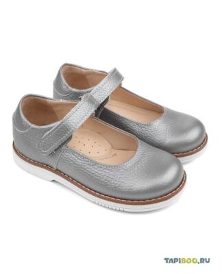 Лаконичная нарядная модель туфелек для девочки на весну и лето для ежедневной профилактики плоскостопия. Выполнены из натуральной кожи серебристого цвета.