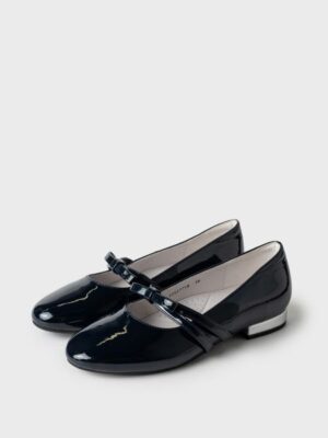 Школьные туфли для девочки подростка выполнены из искусственной лаковой кожи. Чересподъемные ремни имеют резинку с внутренней стороны, поэтому туфли легко обувать.