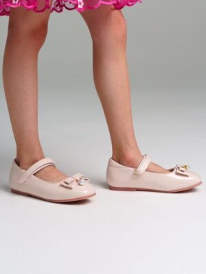 Нарядные туфли на невысоком каблучке украшены бантиком с искусственной жемчужиной. Подкладка выполнена из натуральной кожи. Стелька выполнена из натуральной