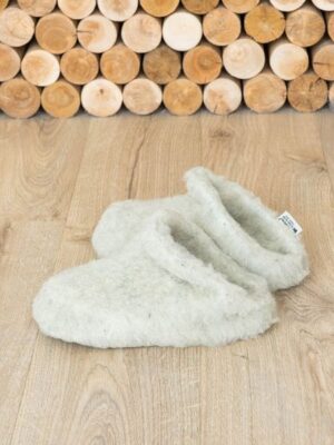 Домашние высокие тапочки для взрослых из натуральной овечьей шерсти с прорезиненной нескользящей подошвой. Alwero