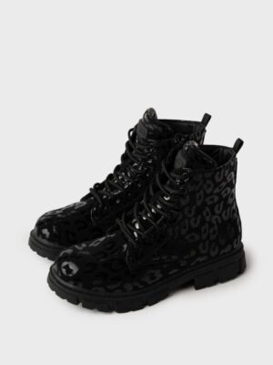 Ботинки на утеплители для девочки подростка. Ботинки выполнены из искусственной кожи с леопардовым принтом. Ботинки на молнии и шнурках, с помощью которых