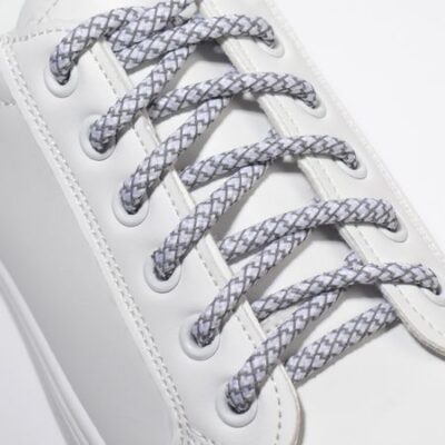 Шнурки для обуви, пара, круглые, со светоотражающим узором, d=6 мм, 110 (±10) см, белые, светло-серые. Хотите чтобы Ваша обувь была самой стильной?