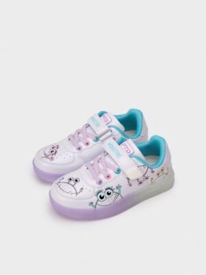 Стильные детские кеды с огоньками для девочки. Кроссовки выполнены из искусственной кожи, обладающей высокими эксплуатационными свойствами.