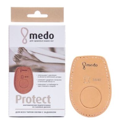 Анатомические подпяточники medo Protect для людей, страдающих от дискомфорта и болевых ощущений в пяточной области, повышают комфорт практически в любой обуви и дополнительно амортизируют. Подходят для закрытой обуви и обуви с открытым носком.