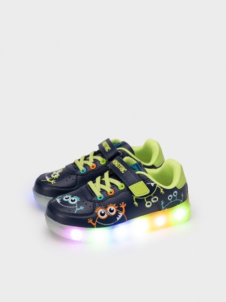 Стильные детские кеды с огоньками для мальчика. Кроссовки выполнены из искусственной кожи, обладающей высокими эксплуатационными свойствами. Модель запринтована смешными мордочками монстриков. Эластичные шнурки и липучка создают удобство при обувании и надежно фиксируют ногу. В носочной части обуви стоит текстильная подкладка c высоким содержанием хлопка 80%, которая обладает высокой гигроскопичностью. В пяточной части обуви текстильная подкладка обладает хорошей износостойкостью. Профилированная съемная стелька имеет специальную форму с анатомическими элементами, которые обеспечивают правильное распределение нагрузки на стопу, а также выполняют массажную функцию стопы . Идеально подходит для длительных прогулок. Формоустойчивый задник поддерживает стопу в правильном положении. Эргономичная форма колодки обеспечивает правильное формирование стопы ребенка. Подошва из ТПР не скользит и устойчива к истиранию. Подошва с мигающим элементом flashlight.