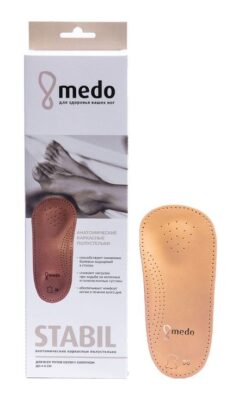 Анатомические полустельки medo Stabil для профилактики плоскостопия и уменьшения усталости ног амортизируют и поддерживают своды стопы в свободной обуви. Подходят для закрытой обуви и обуви с открытым носком.