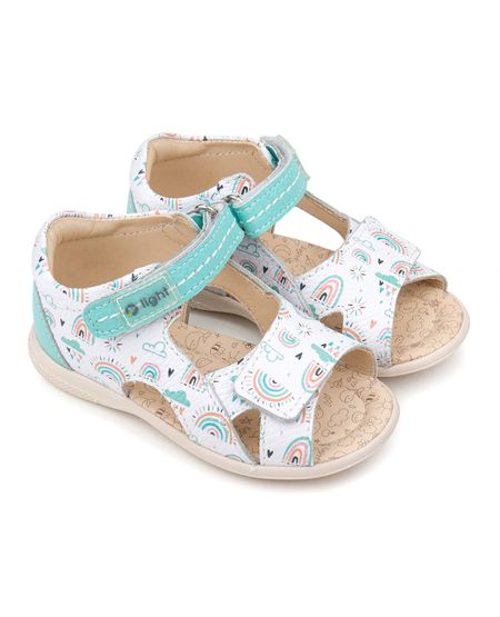 Новая линейка Tapiboo Light — это мягкая и лёгкая повседневная детская обувь с плоской стелькой (без подсводника) и гибкой подошвой. Модные сандалии с открытым носом для девочек. Выполнены из натуральной гладкой кожи белого увета с деталями актуального бирюзового оттенка. Подкладка и стелька – нежнейшая яловая кожа (кожа телёнка), подарит особый комфорт маленькой ножке. Широкий надёжный ремешок с липучкой в носочной части, дополнительный ремешок на лодыжке. Отличная раскрываемость для удобства надевания и прекрасный воздухообмен. Формоустойчивый задник и упругий мягкий кант. Сандалии украшены принтом в тон и фирменным логотипом.