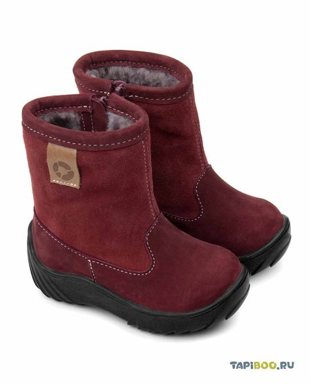 Сапожки утепленные на зиму, на подкладке из натурального меха (овчина), для самых маленьких девочек. Выполнены из натурального нубука и велюра бордового цвета. Удобная застежка на молнию сбоку. Многослойная, анатомическая стелька для правильного формирования стопы. Высокая устойчивая подошва с протектором, имеющая перекат, позволяет повторить естественное движение стопы при ходьбе для правильного распределения нагрузки на опорно-двигательный аппарат ребенка. Жесткий задник. Подошва закрывает часть носка и пятки, что дополнительно защищает модель от промокания в сырую погоду. Подкладка из натуральной овчины поддерживает комфортную температуру внутри обуви при погодных условиях от — 10 до -25 градусов (пожалуйста, учитывайте подвижность ребенка).