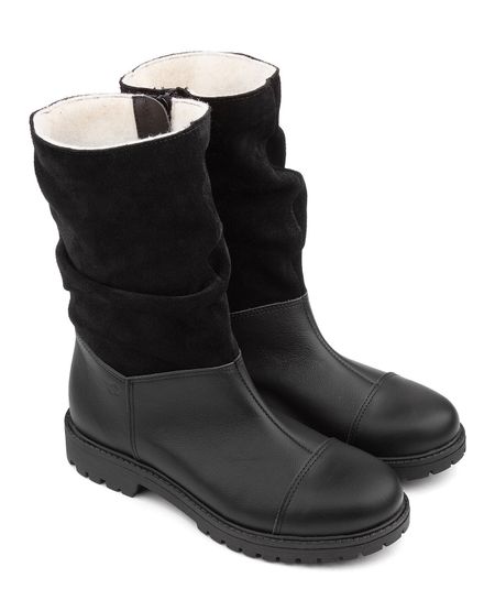 Сапожки демисезонные для девочки на подкладке из шерстяной байки. Выполнены из натуральной чёрной кожи и велюра. Элегантная модель с мягким, комфортным, присборенным голенищем. Упругая анатомическая стелька для правильного формирования стопы. Жесткий фиксирующий задник надежно стабилизирует голеностопный сустав во время ходьбы. Упругая, умеренно-эластичная подошва с протектором, имеющая перекат, позволяет повторить естественное движение стопы при ходьбе для правильного распределения нагрузки на опорно-двигательный аппарат ребенка. Подкладка из шерстяной байки поддерживает комфортную температуру внутри обуви при погодных условиях от +5 до -5-7 градусов. Для дополнительного удобства сапожки снабжены застежкой-молнией, что позволяет легко снимать и надевать обувь.