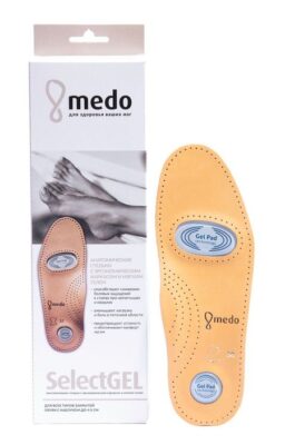 Анатомические каркасные стельки medo Select Gel с вставками из силиконового геля для профилактики плоскостопия и при дискомфорте в опорных зонах стопы создают оптимальный комфорт и амортизацию опорных зон в обуви с жесткой подошвой. Подходят для замены старой съемной стельки или для установки в свободную обувь поверх имеющейся стельки. Для закрытой обуви.