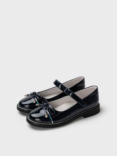Школьные туфли для девочки подростка. Туфли выполнены из искусственной лаковой кожи. Возвратный чересподъемный ремень на липучке дает возможность регулировать обувь на любой подъем. Нарядные туфли украшены декоративным бантом. Декоративный рант с глитером. Подкладка выполнена из 100% натуральная кожа. Кожаная стелька с анатомическим элементом обеспечивает правильную нагрузку на стопу. Высота каблука 2 см — очень комфортная для повседневной носки. Формоустойчивый задник поддерживает стопу в правильном положении. Подошва легкая и гибкая. Лаковые туфли для девочки школьницы отлично подойдут как сменка в школу, на 1 сентября, для праздника, а также для прогулок: весна, лето, ранняя осень.