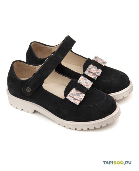 Классические туфельки для школы и повседневной носки с для девочки. Выполнены из натурального нубука чёрного цвета. Гибкая, светлая, современная подошва с протектором — не оставляет следов и не скользит, а также позволяет повторить естественное движение стопы при ходьбе для правильного распределения нагрузки на опорно-двигательный аппарат ребенка. Подкладка из натуральной кожи и многослойная кожаная анатомическая стелька со сводоподдерживающим элементом для правильного формирования стопы. Элегантный ремешок с липучкой для наилучшей регулировки по полноте. Использование современных внутренних материалов позволяет оптимально распределить нагрузку по всей площади стопы и свести к минимуму ее ударную составляющую. Жесткий задник надежно стабилизирует голеностопный сустав во время ходьбы, препятствуя развитию патологических изменений стопы. Туфли украшены элегантным бантом и металлическим логотипом на ремешке.