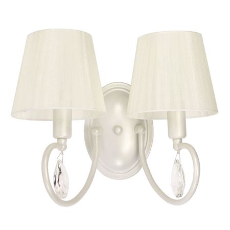 Стиль: прованс Коллекция: Каприз Количество ламп 2 Тип цоколя: E14 Материал плафонов: текстиль Мощность: 40 Вт Материал арматуры: металл Цвет арматуры: бежевый