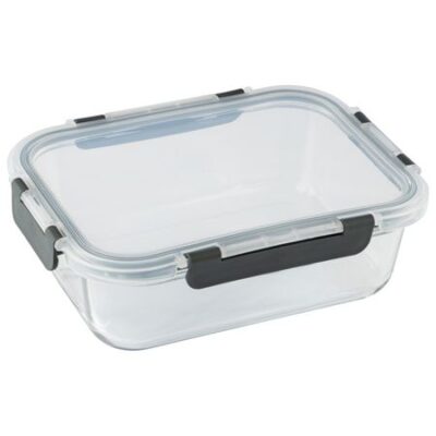 Коллекция: Praktisch Объем: 1,5 л Размер: 23,5×17,7×7,4 см Материал: стекло, пластик Форма: прямоугольная Тип крышки: с 4-мя замками LEONORD