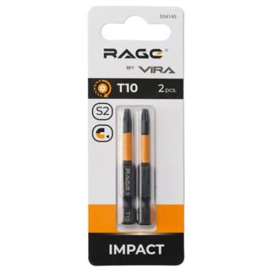 Тип шлица: T10 Длина: 50 мм Материал: сталь S2 Тип хвостовика: шестигранный 1/4» HEX Кол-во в упаковке: 2 шт RAGE BY VIRA