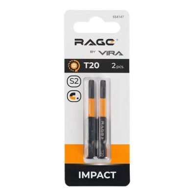 Тип шлица: T20 Длина: 50 мм Материал: сталь S2 Тип хвостовика: шестигранный 1/4» HEX Кол-во в упаковке: 2 шт RAGE BY VIRA