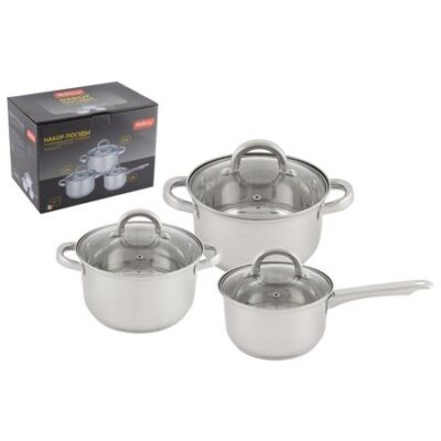 Коллекция: Mediano Количество предметов: 6 Объемы: 1,9 л, 2,6 л, 3,6 л Диаметры: 16 см, 18см, 20 см Наличие крышек: с крышками Индукция: да Материал: нерж.сталь, алюминий, стекло