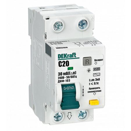 Главная » Дом, дача, сад и огород выключатель дифференциальный DEKRAFT (АВДТ) 1P+N 20А 30мА тип AC С 4,5кА Просмотров 12 Серия: DEKRAFT Номинальный ток: 20А Ток утечки: 30мА Количество полюсов: 2шт Напряжение:220В Предельный ток отключения: 4,5кА DEKRAFT