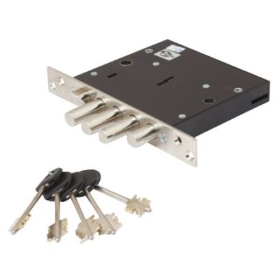 Тип: сувальдный Тип ригеля: цилиндрический Число ригелей: 3 Вылет ригеля: 40 мм Наличие защелки: да Межосевое расстояние: 61 мм Количество ключей: 5 Материал: сталь Цвет: хром