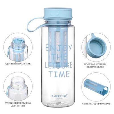 Бутылка для воды, 800 мл, 22×10.5 см, с ситом, синяя. Бутылка для воды — это удобный и практичный аксессуар, предназначенный для хранения и переноски жидкости. Она изготовлена из качественного и безопасного пищевого пластика. Бутылка оснащена крышкой, которая обеспечивает герметичность и предотвращает протекание. Благодаря своей компактности и легкости, она идеально подходит для использования в повседневной жизни, особенно во время занятий спортом или активного отдыха.