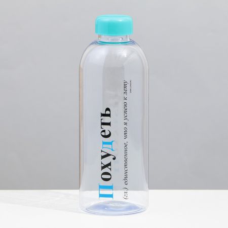 Бутылка для воды пластиковая «Похудеть», 1000 мл. Поддерживайте водный баланс и оставайтесь активными с яркой бутылкой для воды от торговой марки "Сима-Ленд"! Эта бутылка станет вашим незаменимым помощником в течение всего дня, будь то спорт, работа или отдых. Основные характеристики: <ul> <li> Объем: 1000 мл — идеальный размер для тех, кто предпочитает иметь приличный запас воды всегда под рукой.</li> <li> Материал: Изготовлена из прочного и легкого пластика, обеспечивающего долговечность и простоту в использовании. Прозрачный корпус позволяет легко отслеживать уровень жидкости.</li> <li> Дизайн: Яркая крышка с универсальным дизайном придает бутылке стильный вид и гарантирует надежное закрытие. Она легко открывается и закрывается одной рукой, что удобно во время активных занятий.</li> </ul> Эта бутылка — отличный выбор для людей, ведущих активный образ жизни. С "Сима-Ленд" вы сможете наслаждаться собственным стилем и заботиться о своем здоровье!