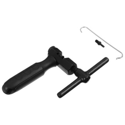 Выжимка для цепи с употом, алюминий, цвет черный. Инструмент предназначен для укорачивания и удлинения цепи велосипеда. Изделие применяется для цепей на