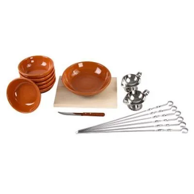 Набор пикник вятская керамика (лоток из картона, 1 большое блюдо для мяса, 6 тарелок 0,5 л, разделочная доска, 2 соусника, 6 шампуров, нож) Вятская керамика