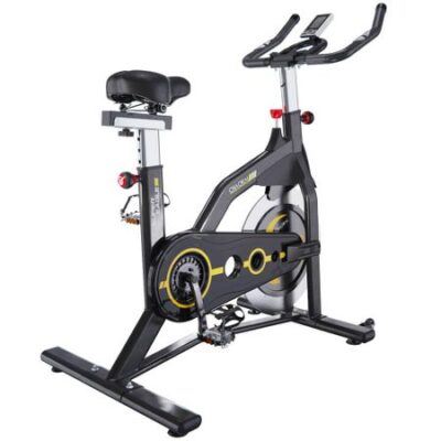 Спин-байк DFC Chaoke CK-2 с дисплеем удобнее и тише других. Прочная стальная рама и алюминиевый маховик весом 19 килограмм обеспечивают устойчивость во время езды на велосипеде. Он выдерживает нагрузку до 150 кг и подходит для пользователей ростом от 146 до 198 см. Особенности Система магнитного сопротивления Система магнитного сопротивления позволяет легко и удобно изменять интенсивность тренировки, что делает её идеальным выбором как для начинающих, так и для профессионалов. Гибридная система с магнитом обеспечивает плавную, почти бесшумную езду на велосипеде, обеспечивая полную безопасность благодаря нажимному аварийному тормозу Регулировка сиденья и руля Благодаря 6 уровням регулировки высоты сиденья и 6 уровням высоты руля этот велотренажёр отвечает потребностям людей разного роста. Большое, мягкое и дышащее сиденье обеспечивает комфорт при длительной езде на велосипеде Дисплей Цифровой ЖК-экран на велотренажёре позволяет отслеживать время тренировки, скорость, количество сожжённых калорий, дистанцию, частоту сердечных сокращений и данные одометра в режиме реального времени. Это позволяет легко корректировать режим тренировок. Держатель для планшета позволяет вам слушать музыку или смотреть видео во время тренировки, что делает ваши тренировки более приятными Нескользящие педали Нескользящие педали в форме стальной клетки подходят для всех размеров стопы и обеспечивают полную защиту, предотвращая скольжение и движение вперёд. Они также оснащены регулируемыми ремешками для надёжной фиксации. Транспортировочные колёса велосипеда облегчают его перемещение