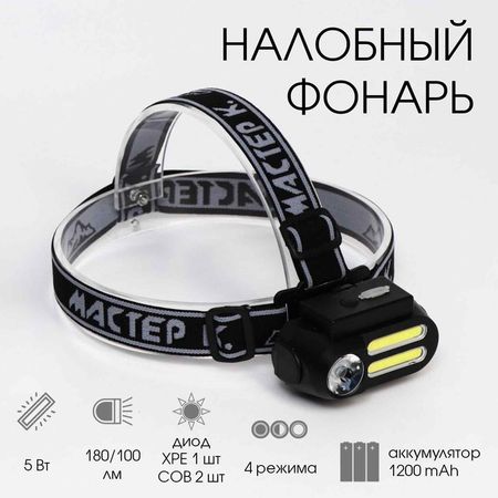 Фонарь налобный аккумуляторный «Мастер К», 4 режима, USB, 4 х 8 см