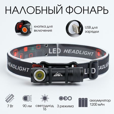 Фонарь налобный аккумуляторный «Мастер К» — это идеальный спутник для любителей активного отдыха и профессионалов, которые ценят надежность и удобство в использовании. Оснащенный мощным светодиодом мощностью 7 Вт, этот фонарь обеспечивает яркость до 90 люмен, делая его незаменимым в условиях недостаточной освещенности.С аккумулятором емкостью 1200 мАч типа 18650 вы сможете наслаждаться 3 часа работы устройства. Фонарь предлагает три режима яркости, позволяя выбирать нужный уровень освещения в зависимости от ваших потребностей — от экономного до максимального, подходящего для освещения больших пространств.Компактные размеры 8 х 2.5 см делают фонарь легким и удобным для переноски, а благодаря USB-разъему его можно легко заряжать от любых источников питания. Прочный корпус и эргономичный дизайн обеспечивает надежную фиксацию на голове, освобождая руки для выполнения других задач. Выберите фонарь «Мастер К» и будьте уверены в своем освещении в любую погоду и в любое время суток.Особенности:Тип фонаря: НалобныйМощность: 7 ВтСветовой поток: 90 лмКоличество режимов: 3Тип светодиода: T6Тип питания: аккумулятор 18650Время автономной работы: 4 часаЁмкость аккумулятора: 1200 MahНапряжение: 3.7 ВИндикатор заряда: даМатериал корпуса: пластик, металлВлагозащита: нетГарантия: 3 месяцаРазъём зарядного устройства:USB