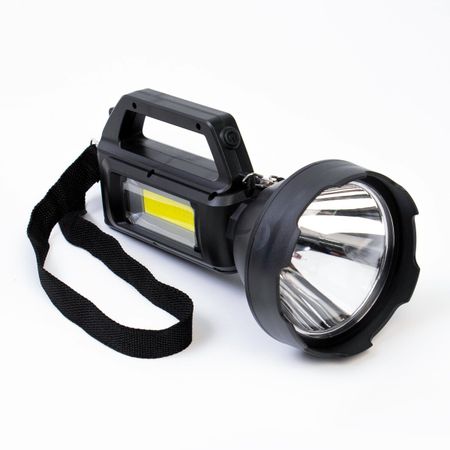Фонарь светодиодный аккумуляторный ручной, 50 Вт, 6600 мАч, 1300 лм, СОВ, Р50, IPX4. <ul> <li> С возможностью зарядки мобильного устройства </li> <li> Дальность 200 — 500 м</li> <li> Пять уровней яркости освещения</li> <li> Водонепроницаемый</li> </ul>