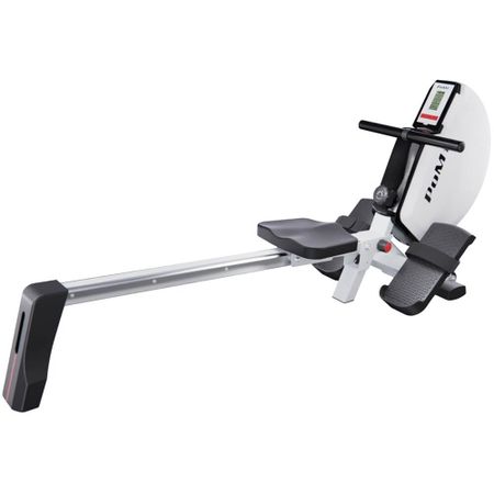 Гребной тренажёр DFC PoMt PMRM2005 — отличный выбор для домашних тренировок. Максимальный вес пользователя составляет 120 кг, что делает тренажёр подходящим для людей с разной физической подготовкой. Тренажёр идеально подходит для укрепления мышц верхней части тела и развития выносливости. Особенности Плавный и тихий ход Кардиотренажёр оснащён магнитной системой нагрузки и предлагает эффективную тренировку мышц рук и ног. Модель оборудована маховиком весом 4 кг, который гарантирует плавный и тихий ход, а 8 уровней сопротивления позволяют подобрать оптимальную нагрузку для пользователей любого уровня подготовки Удобное управление Монохромный LCD-дисплей отображает основные параметры тренировки, такие как пульс, время, количество гребков, общее количество гребков и калории, а также имеет режим сканирования. Размер консоли — 15х9.5х3 см. Консоль работает от двух батареек типа АА Продуманная конструкция Гребной тренажёр легко впишется в домашнее пространство благодаря продуманной конструкции: в рабочем положении его размеры составляют 180х47х85 см, а при складывании он становится ещё компактнее — 98х47х137.5 см. Наличие специальных транспортировочных роликов обеспечивает удобное перемещение тренажёра по дому