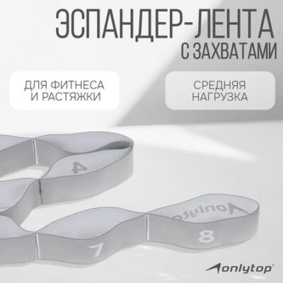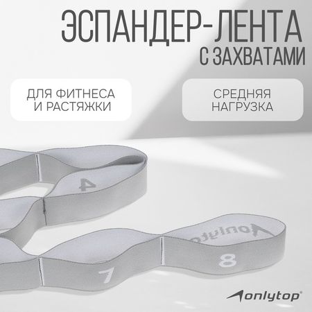 Эспандер-лента ONLYTOP, эластичная, с захватами, 90×4 см, цвет серый