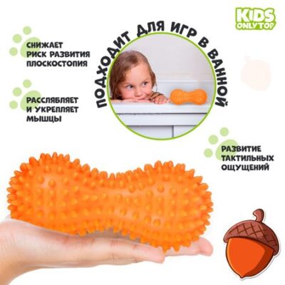 Мяч массажный ONLYTOP «Белочка», двойной, цвет оранжевый. Массажер предназначен для физического воздействия на биологически активные точки на теле человека. Этот мяч используют для общего оздоровления организма, укрепления иммунитета, расслабления, снятия физического и психоэмоционального напряжения. Массажер развивает моторику рук ребенка, способствует улучшению памяти, внимания и развитию речи. Подходит для использования во время купания в ванной. Массажер рекомендован детям от 3 лет и взрослым.